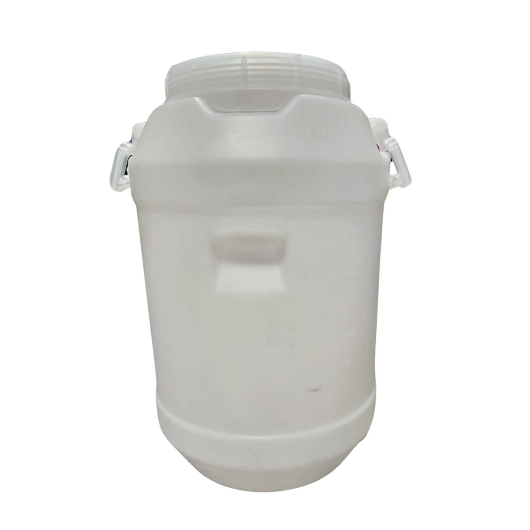 Food grade polyethylene, 60 litres Round Open Head Plastic Drum with a large screw lid and rubber seal.